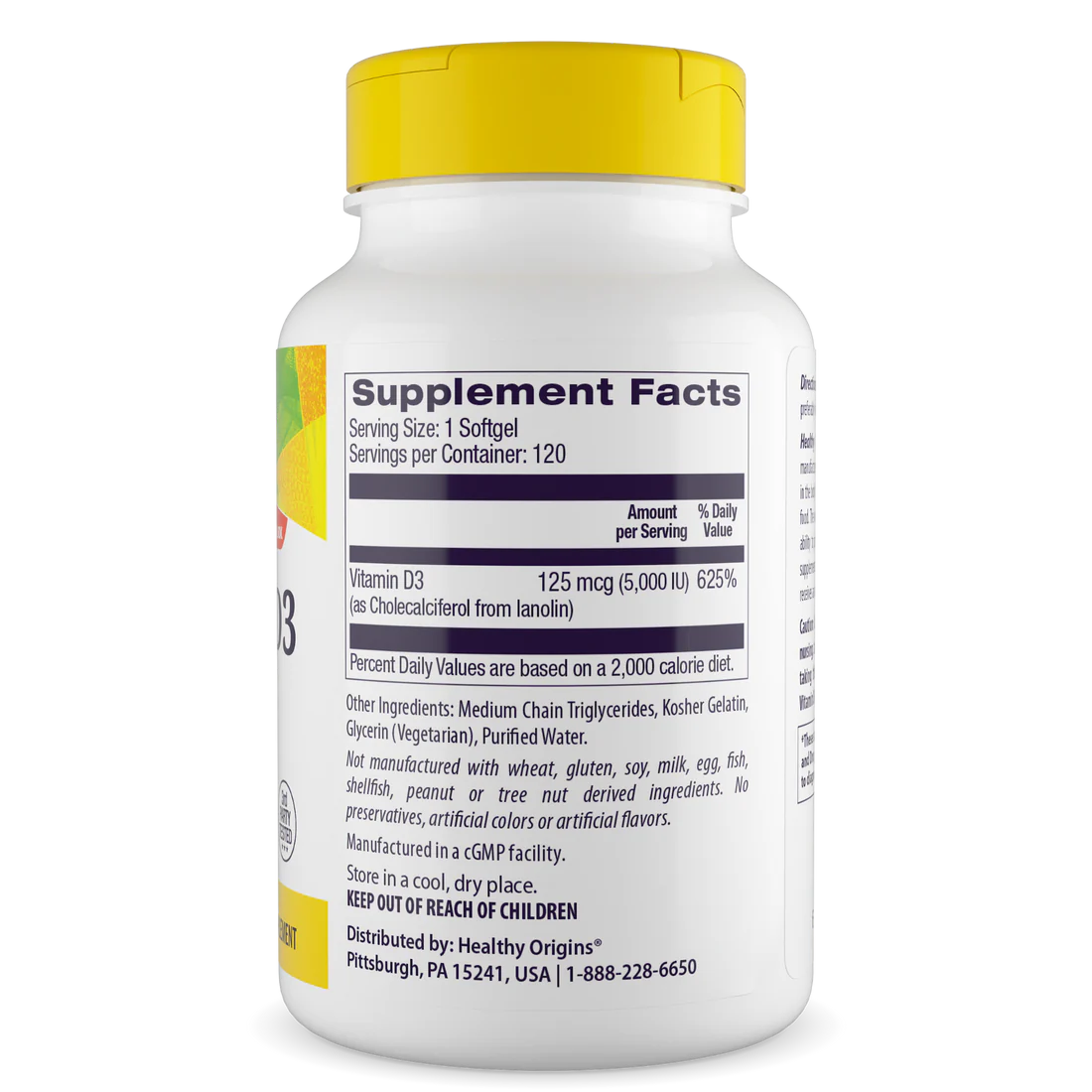 Healthy Origins® Vitamin D3 5,000 IU: Your Essential Sunshine in a Softgel